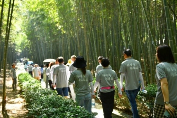 上午我們到達(dá)活動(dòng)的第一站——桐廬大奇山國家森林公園。驕陽似火,猶如大家的熱情一樣。一進(jìn)大奇山,便是一片竹海,大家在青翠流動(dòng)的竹海中,走棧道,搖索橋,攀石壁,涉溪水享受閑情雅致。