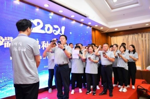 下午1時(shí)許,本年度新藥學(xué)服務(wù)總公司四年聯(lián)動(dòng)誓師大會(huì)如約開始,李邦良董事長通過視頻發(fā)表講話給予營銷團(tuán)隊(duì)肯定及期望。接著新藥學(xué)服務(wù)公司總經(jīng)理鮑銀杰圍繞“全終端、全品種、全覆蓋、新啟航”的主題,針對2021年風(fēng)起云涌、競爭激烈的醫(yī)藥市場給予各銷售團(tuán)隊(duì)指導(dǎo)意見,鮑總還給出管理干部的六條職責(zé)和能力培養(yǎng),對公司的骨干進(jìn)行指導(dǎo)。對于公司的未來發(fā)展鮑總也給出了發(fā)展目標(biāo),指明方向、確立信念。各大區(qū)團(tuán)隊(duì)依次上臺(tái)宣誓,立志腳踏實(shí)地、眾志成城;齊頭并進(jìn),多樹標(biāo)桿,爭取非布快上量,不拘一隅,多方協(xié)作,布局米拉搶先機(jī);下沉基層,精耕細(xì)作二三終端建渠道;公司藍(lán)圖已描繪,咬定青山不放松!