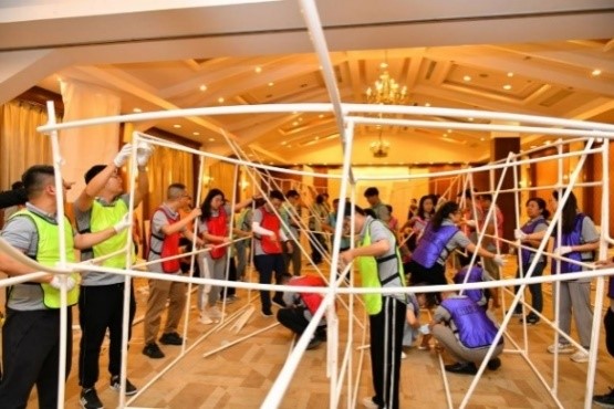 會(huì)議結(jié)束后,開展了團(tuán)隊(duì)巨艦活動(dòng),在互幫互助的氛圍中,伙伴們都積極參與,最后成功搭建長15米高8米的巨型艦船,體現(xiàn)出整個(gè)團(tuán)隊(duì)每一份子都是不可或缺,也是緊緊聯(lián)系在一起的!