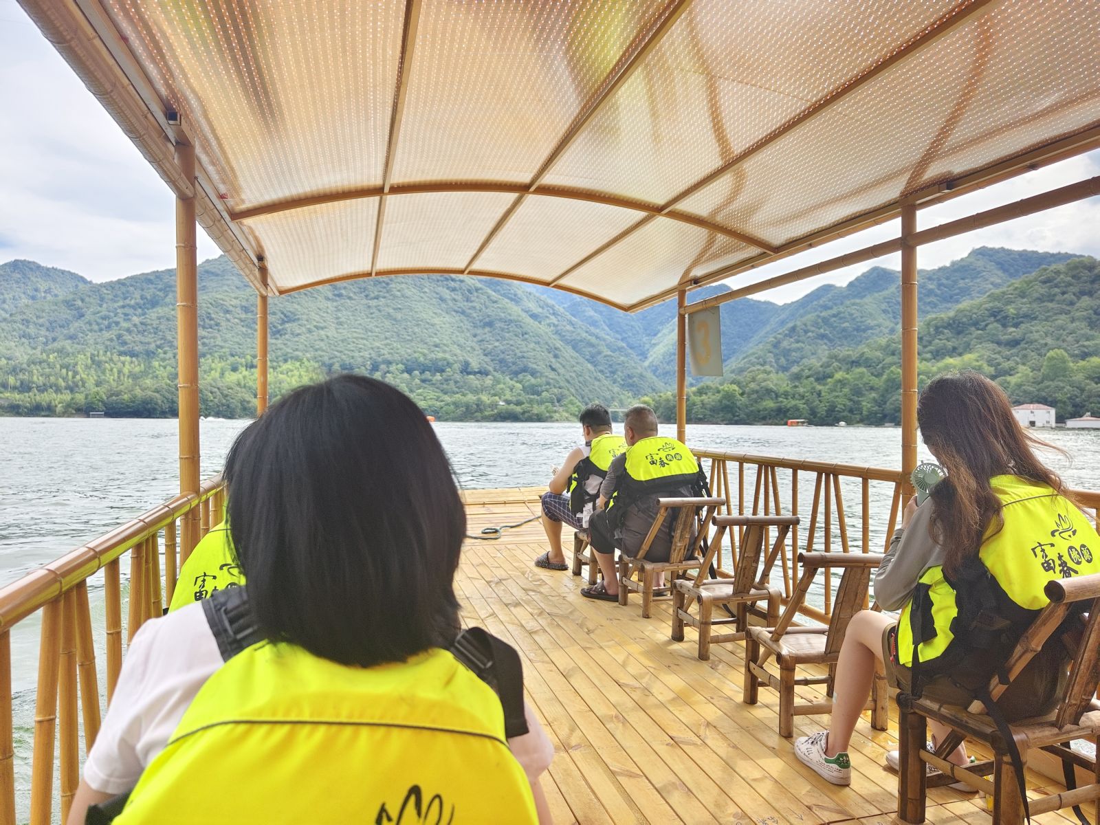 整個富春桃源融山、水、林、洞、湖泊于一體。黨員們最后一站同乘竹筏環(huán)繞逍遙巖嶺湖,動靜相宜,山水互為。此次團建活動,有歡笑,有汗水,有刺激,有閑適,大伙兒共同合力鐫刻了一份可貴可敬的記憶。黨員們之間的默契與凝聚力,最終都將為時間所證明。
