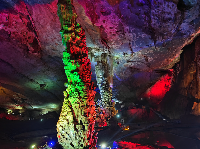 擎天玉柱,法安降虎 ,比薩斜塔,玉幔高垂,冰洲石,一線天,定海神針……黨員們抵達景區(qū)的第一站便是參觀有“亞太第一大洞廳”美譽的九霄碧云洞。碧云洞洞內(nèi)面積多達2.8萬平方米,凈空最高處24米,共有神奇絢麗的景石23組。洞中最大的鐘乳石"擎天玉柱",顧自撐起了洞頂?shù)囊黄?藍天白云",徜徉在奇特的溶洞奇觀之中,大伙兒紛紛感嘆大自然的鬼斧神工。點與點的積累,量到質(zhì)的變化,時間終將證明一切,事業(yè)如是,學習亦如此。